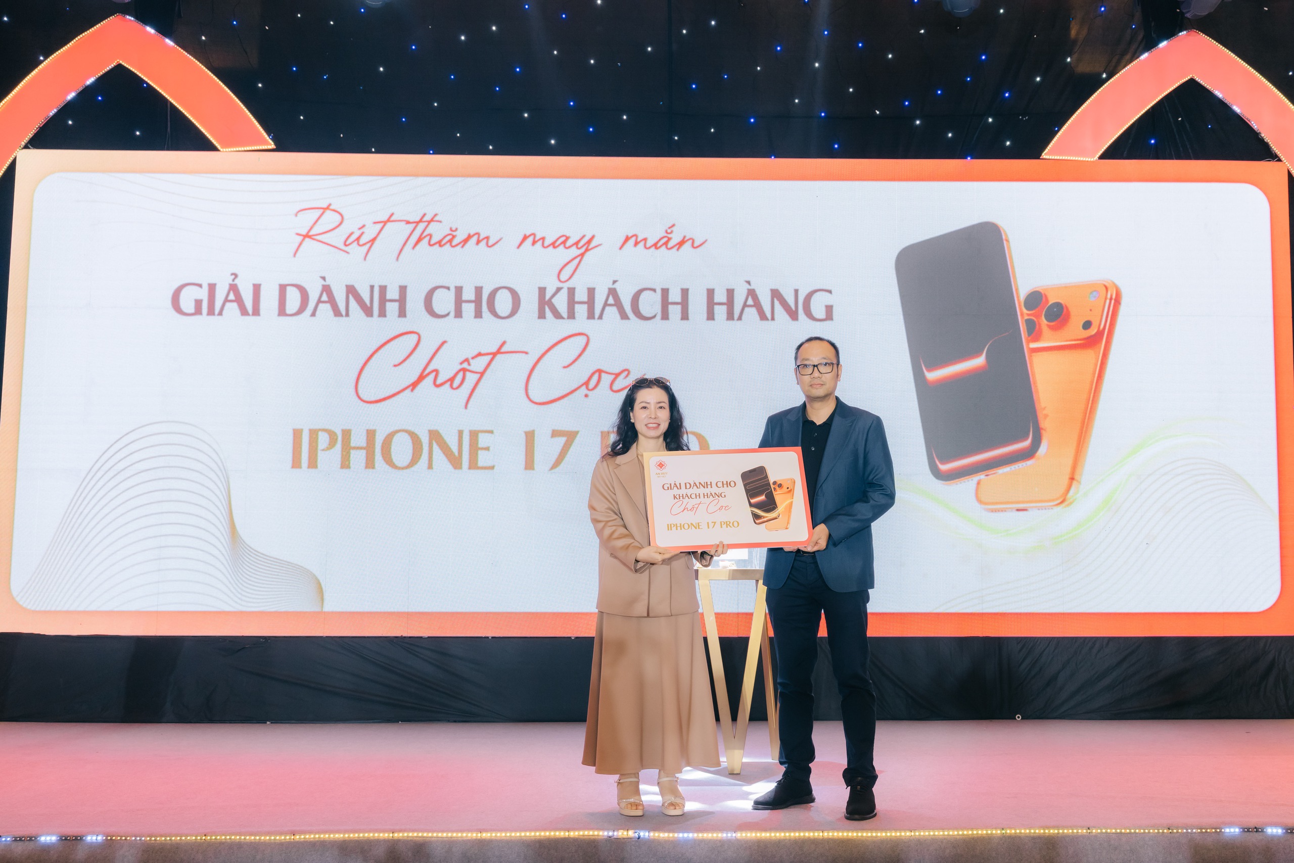 Khách hàng chốt cọc thành công tại sự kiện và nhận giải thưởng.