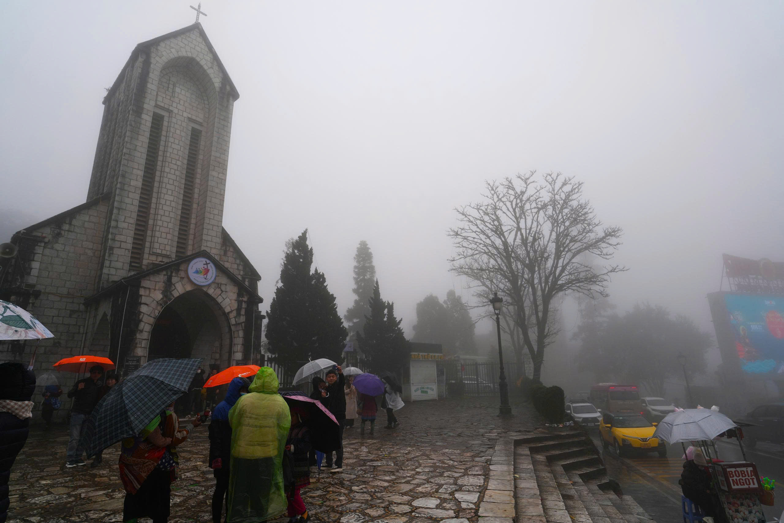 Nhà thờ đá Sa Pa trong mù sương. (Ảnh: Bùi Văn Doanh)