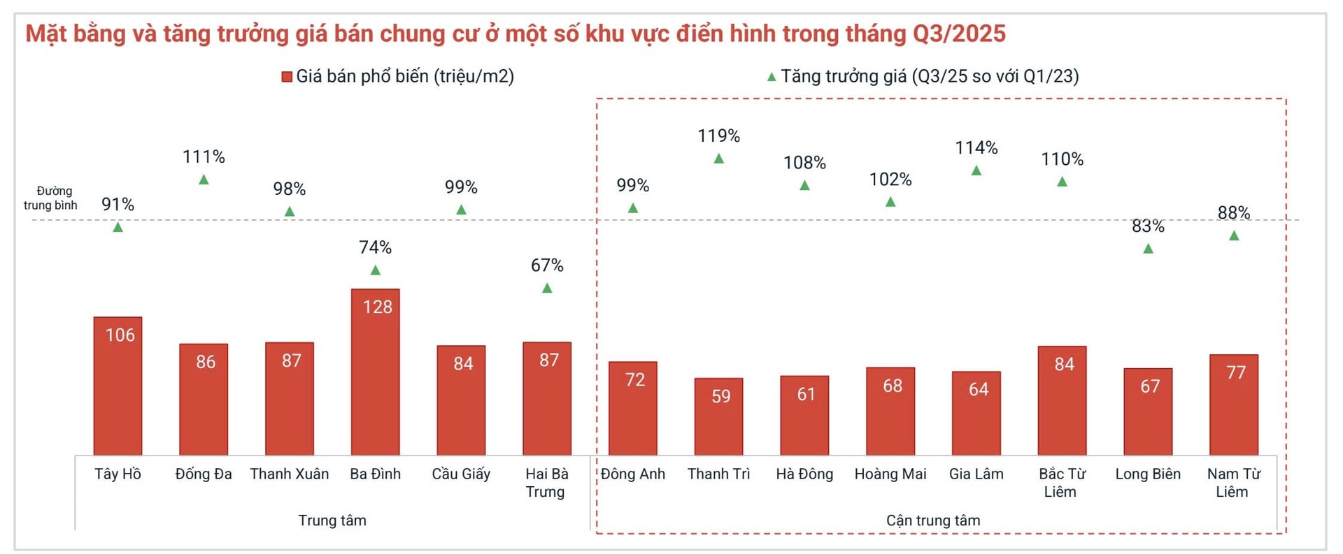 Báo cáo của CBRE Việt Nam cho thấy, quý III/2025, Hà Nội ghi nhận hơn 10.300 căn hộ mở bán, trong đó 20% có giá vượt 120 triệu đồng/m2; còn TP. HCM xuất hiện những dự án trung tâm chào bán ở mức 120-150 triệu đồng/m2, thậm chí vượt 230 triệu đồng/m2. Đây là năm mà phân khúc chung cư không chỉ tăng giá mà còn bứt tốc, lập đỉnh, đặt ra nhiều câu hỏi về tính bền vững của thị trường.