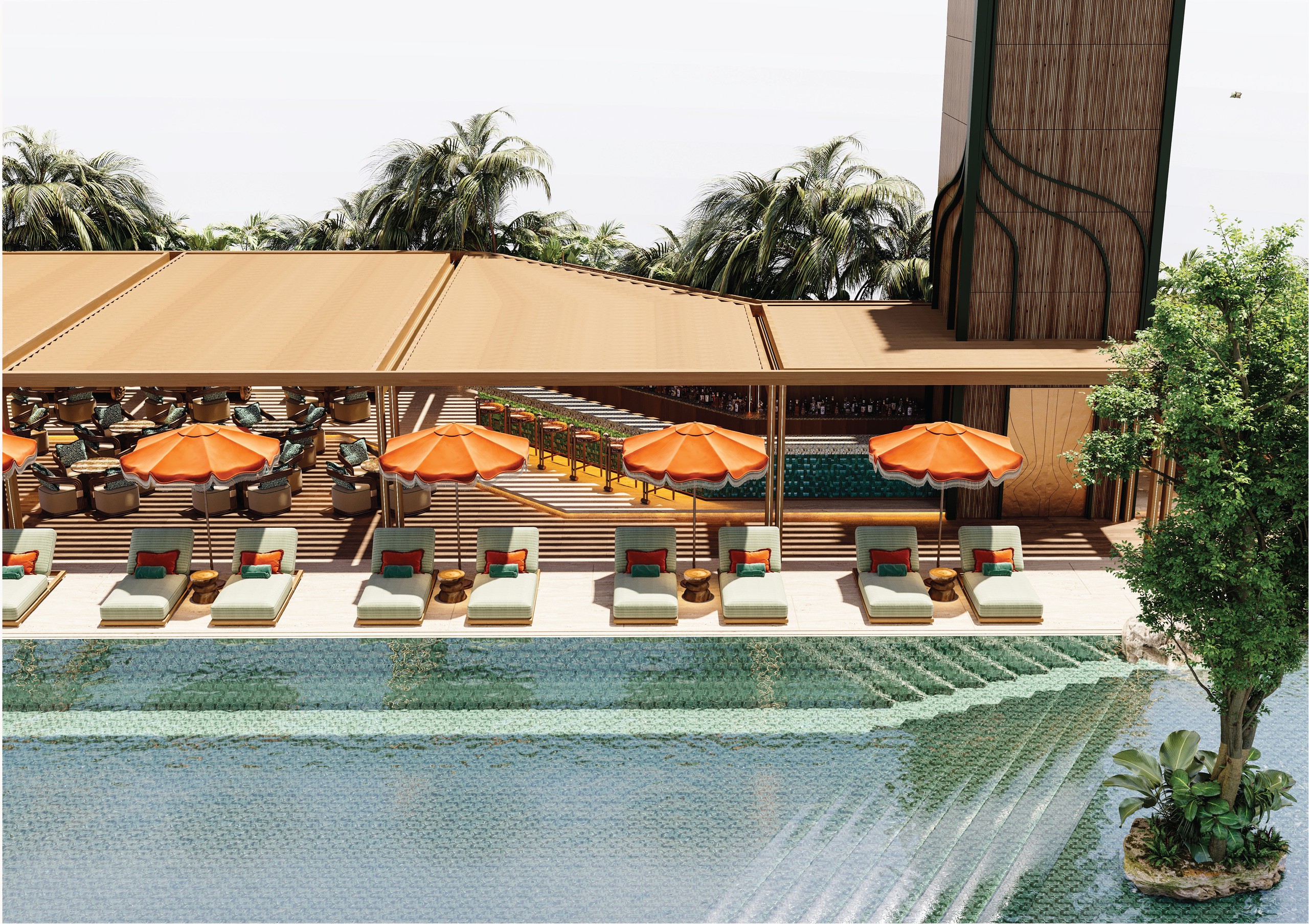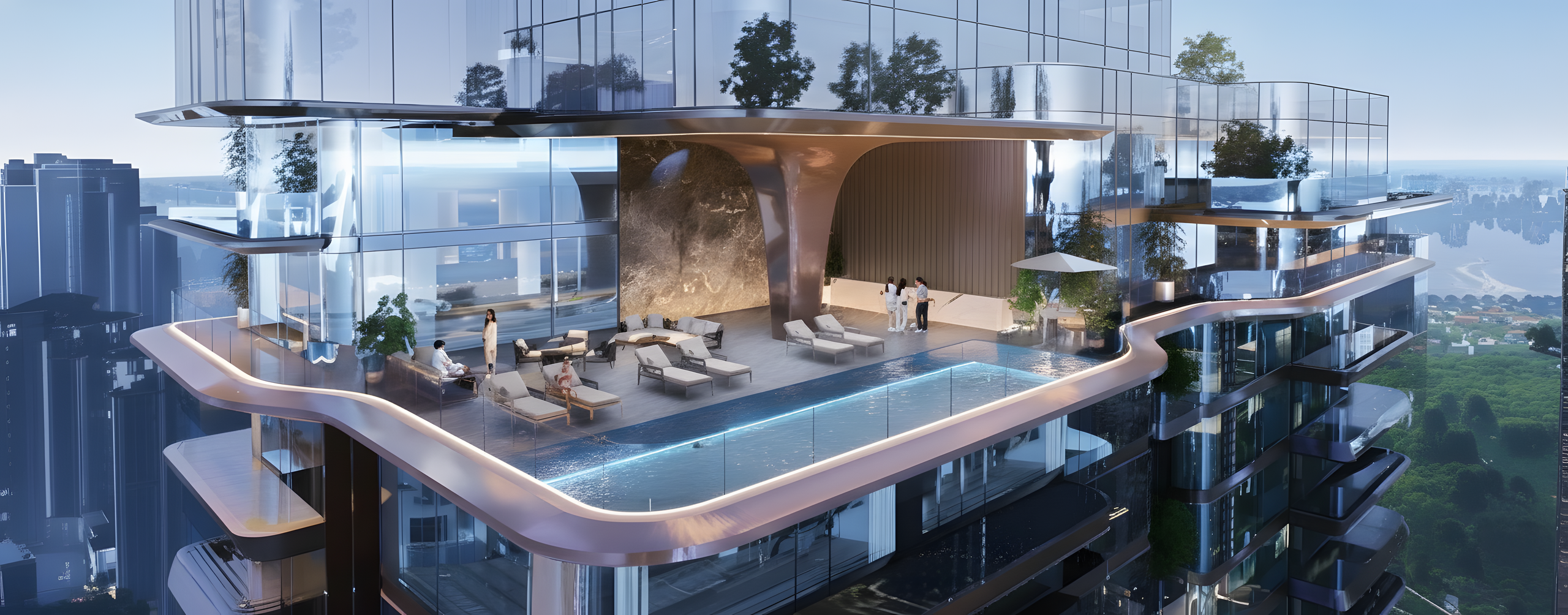 Sunshine Group hợp tác cùng Sunset Hospitality Group (SHG) – thương hiệu hàng đầu đến từ Dubai để vận hành tổ hợp nhà hàng, bể bơi và sky bar tiêu chuẩn 6 sao đầu tiên tại Ciputra. (Ảnh: Noble Crystal Tay Ho WorldHotels Residences)