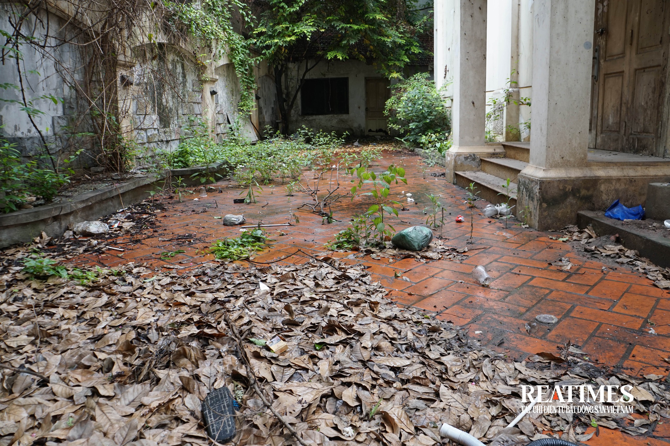 Hiện trạng các hạng mục đã xuống cấp vì lâu không có người ở, cửa gỗ nhiều chỗ mục nát, dây leo kín, sân vườn đầy lá khô mục.