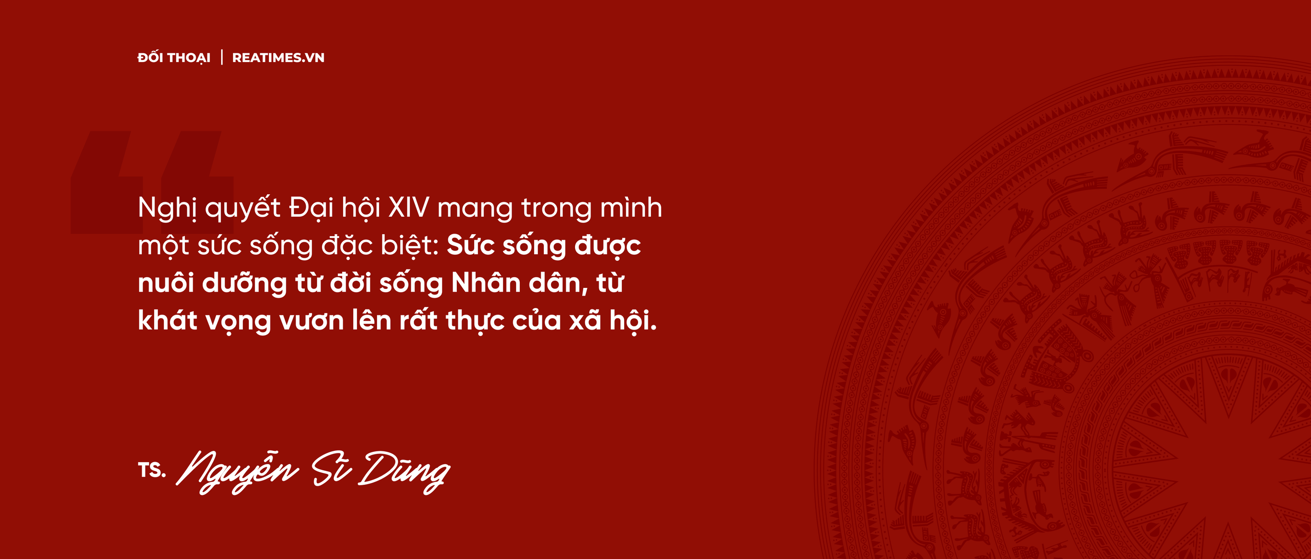 - "Dân là gốc" - tư tưởng xuyên suốt trong Văn kiện và cũng là cội nguồn sức mạnh của cách mạng Việt Nam. Tư tưởng này là yếu tố đảm bảo rằng, "Nghị quyết Đại hội XIV không dừng ở tầm nhìn và định hướng, mà đã mang trong mình hơi thở của cuộc sống, khơi dậy khát vọng phát triển và động lực hành động mạnh mẽ, sẵn sàng đi vào thực tiễn ngay sau Đại hội". Tiến sĩ có suy ngẫm gì không?