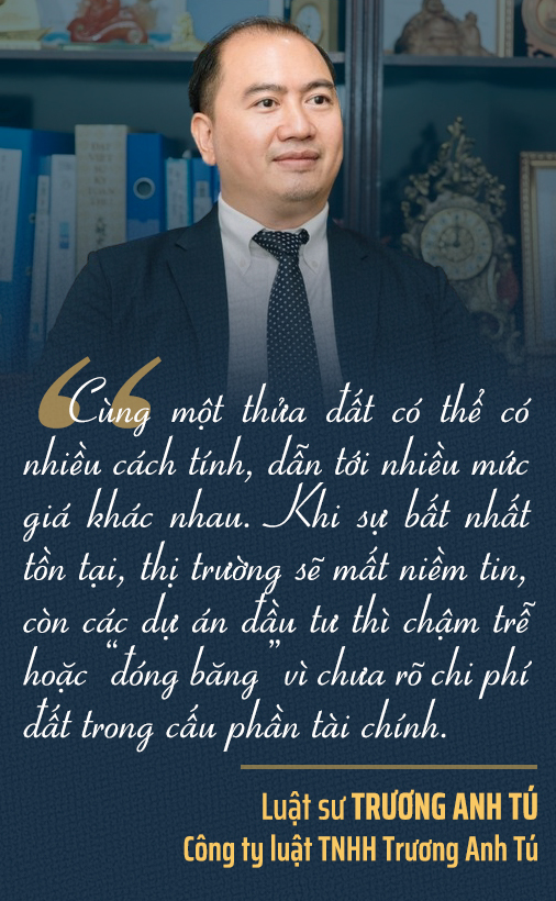 Theo ông, điều này tạo ra nghịch lý: Cùng một thửa đất, có thể có nhiều cách tính, dẫn tới nhiều mức giá khác nhau. Khi sự bất nhất tồn tại, thị trường sẽ mất niềm tin, các dự án đầu tư thì chậm trễ hoặc "đóng băng" vì chưa rõ chi phí đất trong cấu phần tài chính.