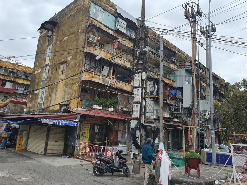 Khu chung cư xuống cấp được rào chắn nhằm đảm bảo an toàn, tránh người dân tiếp cận khu vực nguy hiểm.