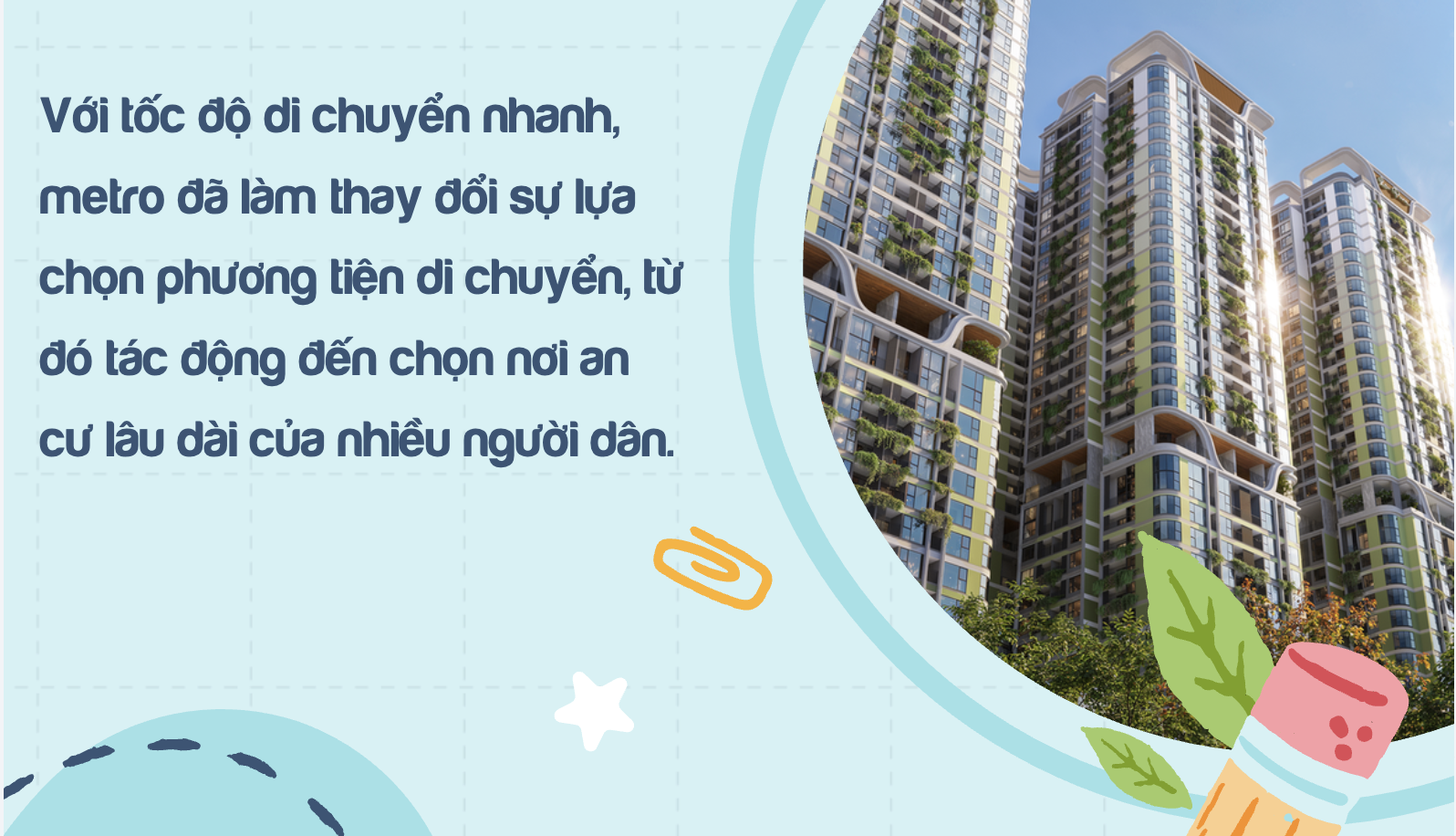 Nhờ những giá trị vượt trội mà metro mang lại, bất động sản gần ga metro ngày càng được cư dân đô thị hiện đại "săn tìm", đặc biệt là với người trẻ hiện đại. Trong bối cảnh TP.HCM được đẩy mạnh hạ tầng đô thị, trong đó tuyến metro Thủ Dầu Một – TP.HCM được đánh giá là "đòn bẩy hạ tầng tỷ đô" của khu vực Đông Bắc TP.HCM.