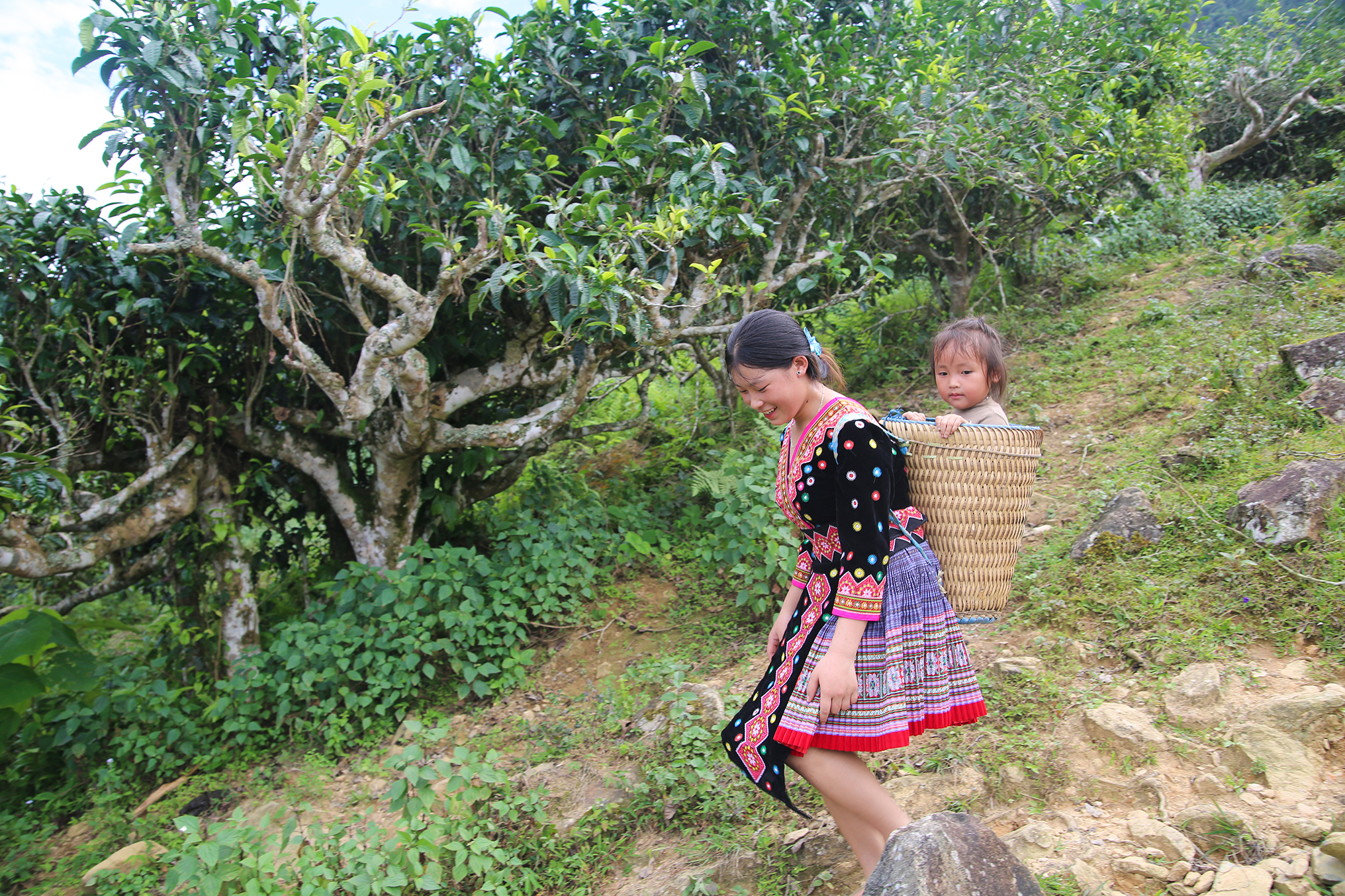Với đứa trẻ vùng cao, thế giới đầu tiên các em chạm vào là bờ vai mẹ, nhịp ru hời chính là tiếng bước chân mẹ đều đặn trên những dốc đá cheo leo.