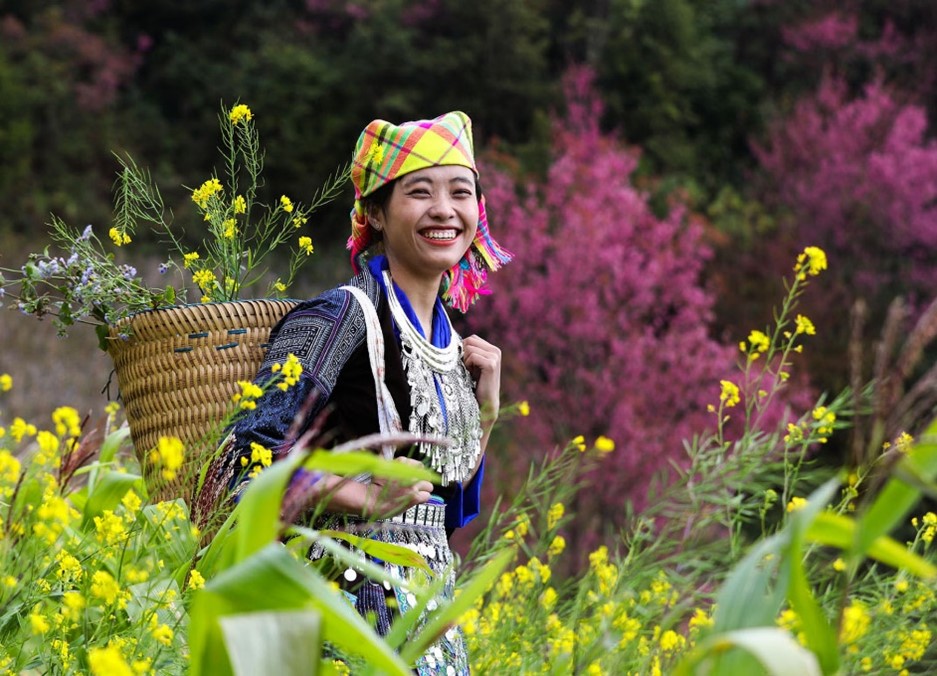 Không chỉ đựng ngô lúa, lu cở còn gùi cả mùa xuân xuống bản, tôn vinh nét duyên dáng, yêu đời của những cô gái vùng cao.