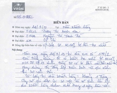 Ngay sau khi phát hiện được sự việc trên, khách hàng đã liên hệ đến công ty cổ phần kỹ nghệ thực phẩm Việt Nam (Vifon) để thông báo. Ngày 24/09/2019, đại diện công ty đã có mặt tại nhà của khách hàng để kiểm tra. Qua quá trình kiểm tra sơ bộ mẫu sản phẩm bột canh được sản xuất ngày 28/07/2019, nhận thấy sản phẩm có bị lẫn cát (trên mẫu thử).