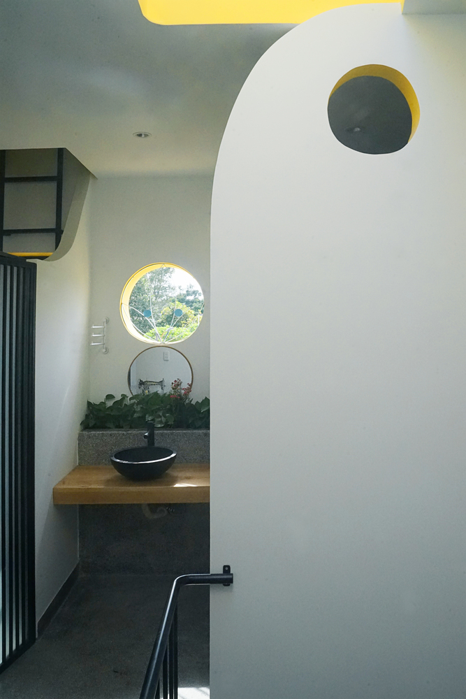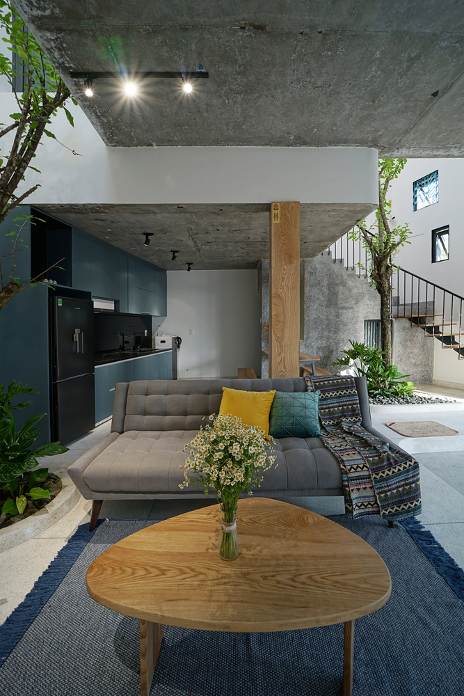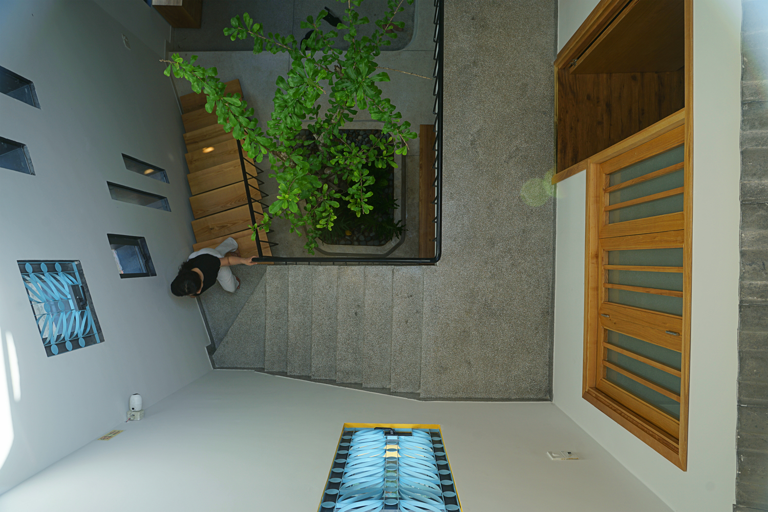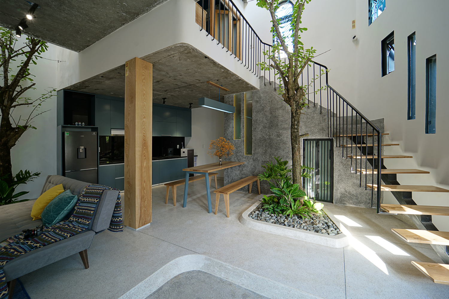 Điều kiện khí hậu khắc nghiệt của miền Trung Việt Nam đưa ra thách thức tối đa hóa việc tiếp xúc với ánh sáng nhưng lại phải hạn chế nhiệt độ hết mức. Để giải quyết vấn đề này, ngoài việc sử dụng vật liệu thô, gam màu trung tính, ngôi nhà còn được bố trí những ô cửa nhỏ được bao quanh bởi những cây xanh khiến nó trông giống như một hộp điều hòa lớn.