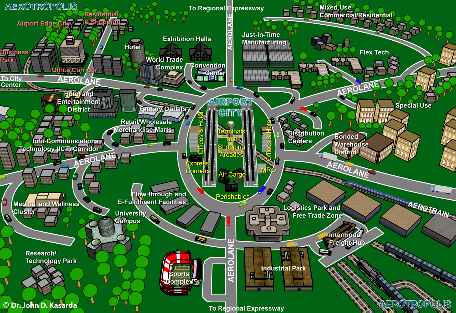 Ông John D. Kasarda, chuyên gia hàng đầu thế giới về phát triển sân bay và mô hình "aerotropolis" - đô thị sân bay, từng nói: "Sân bay sẽ là yếu tố định hình vị trí kinh doanh và phát triển đô thị trong thế kỷ 21, tương đương với vai trò của các tuyến đường cao tốc trong thế kỷ 20, đường sắt trong thế kỷ 19 và cảng biển trong thế kỷ 18".