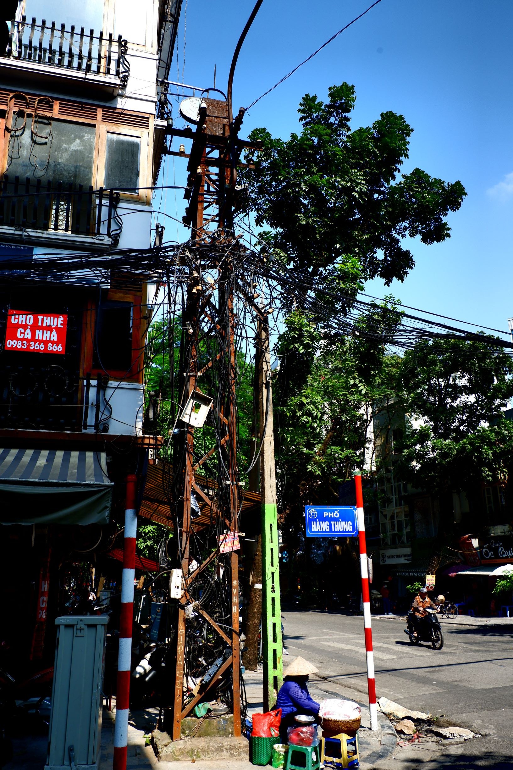 Cột điện cũ góc phố Hàng Thùng, Hà Nội. (Ảnh: Bùi Văn Doanh)