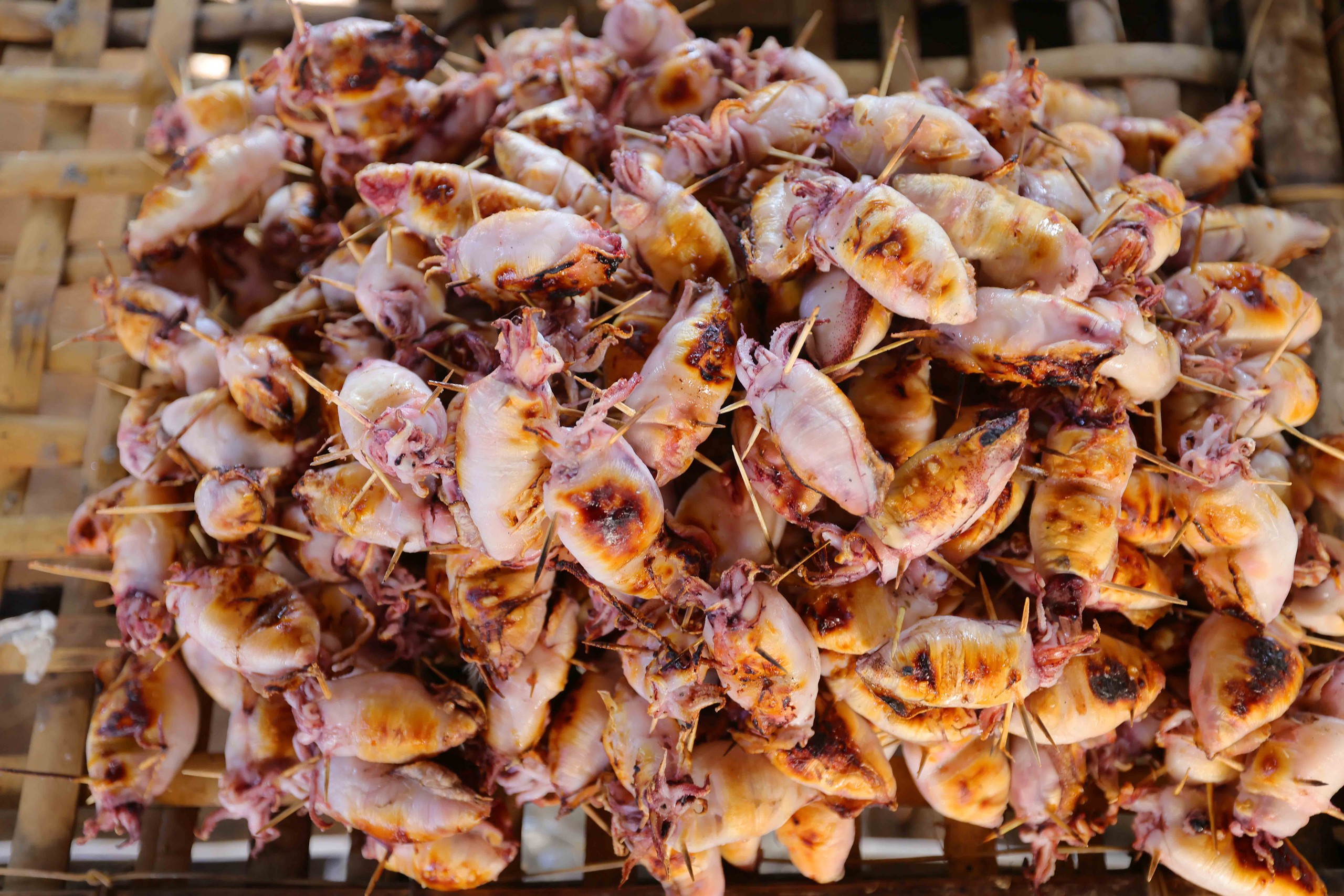 Ngoài cá trích nướng còn có thêm mực nướng, ốc nướng ...