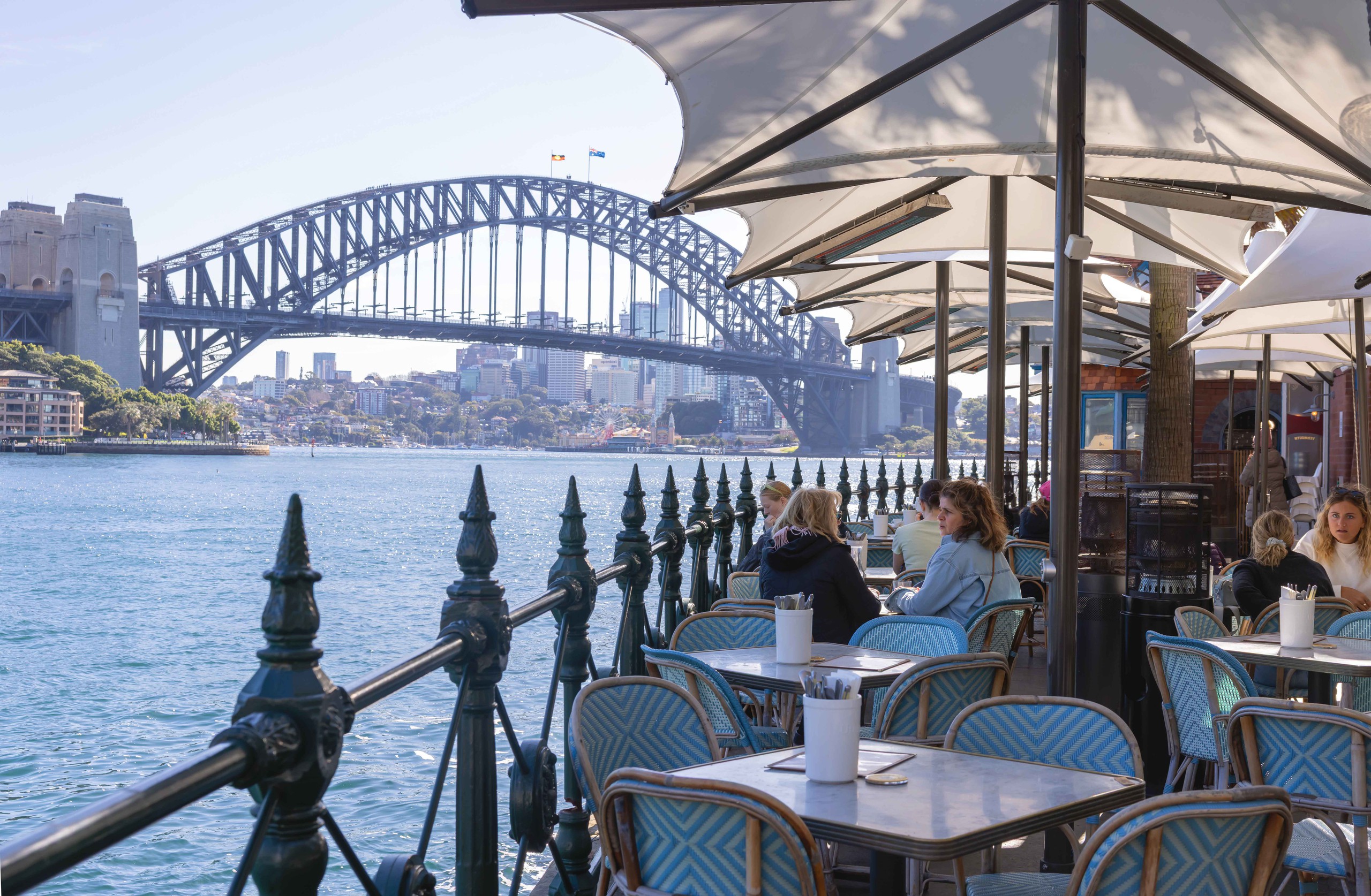 Nhìn từ xa, cầu cảng như ôm trọn cả vịnh Sydney, sôi động với những du thuyền chở du khách khám phá vịnh biển.