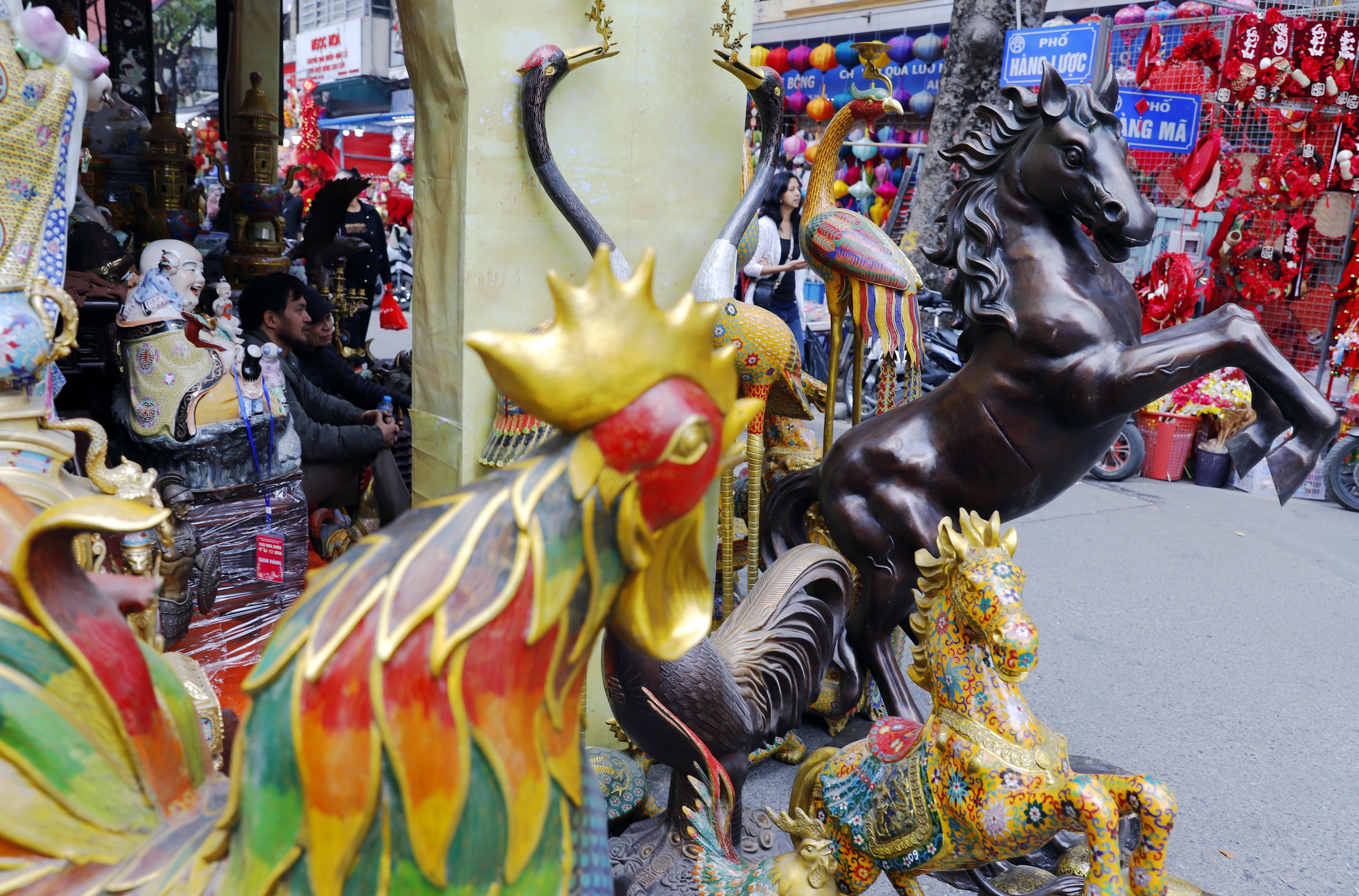 Ngoài linh vật của năm, các món đồ ở chợ đa dạng, nhiều chủng loại khác nhau, từ tượng Phật, đỉnh đồng, lư hương…