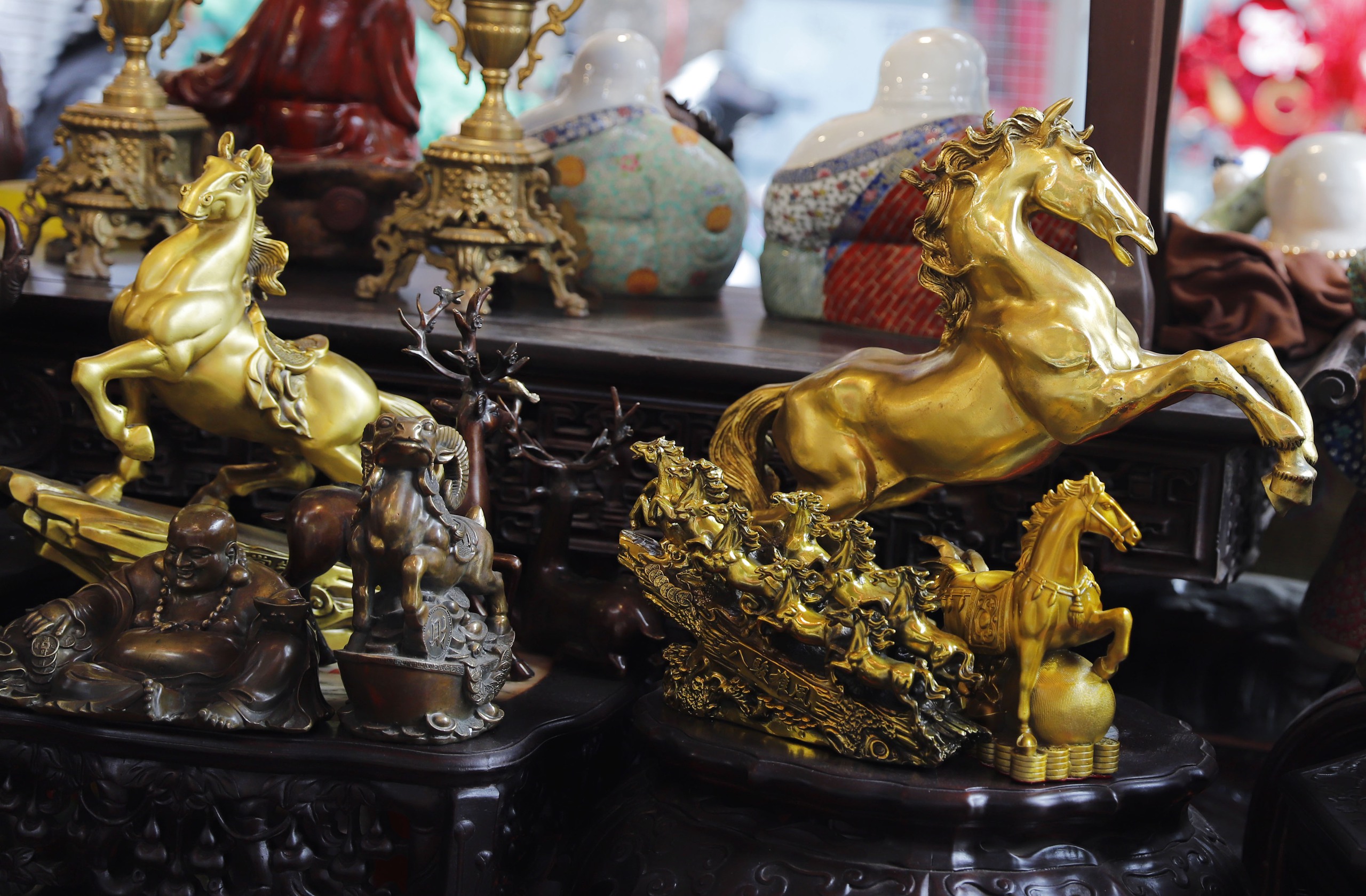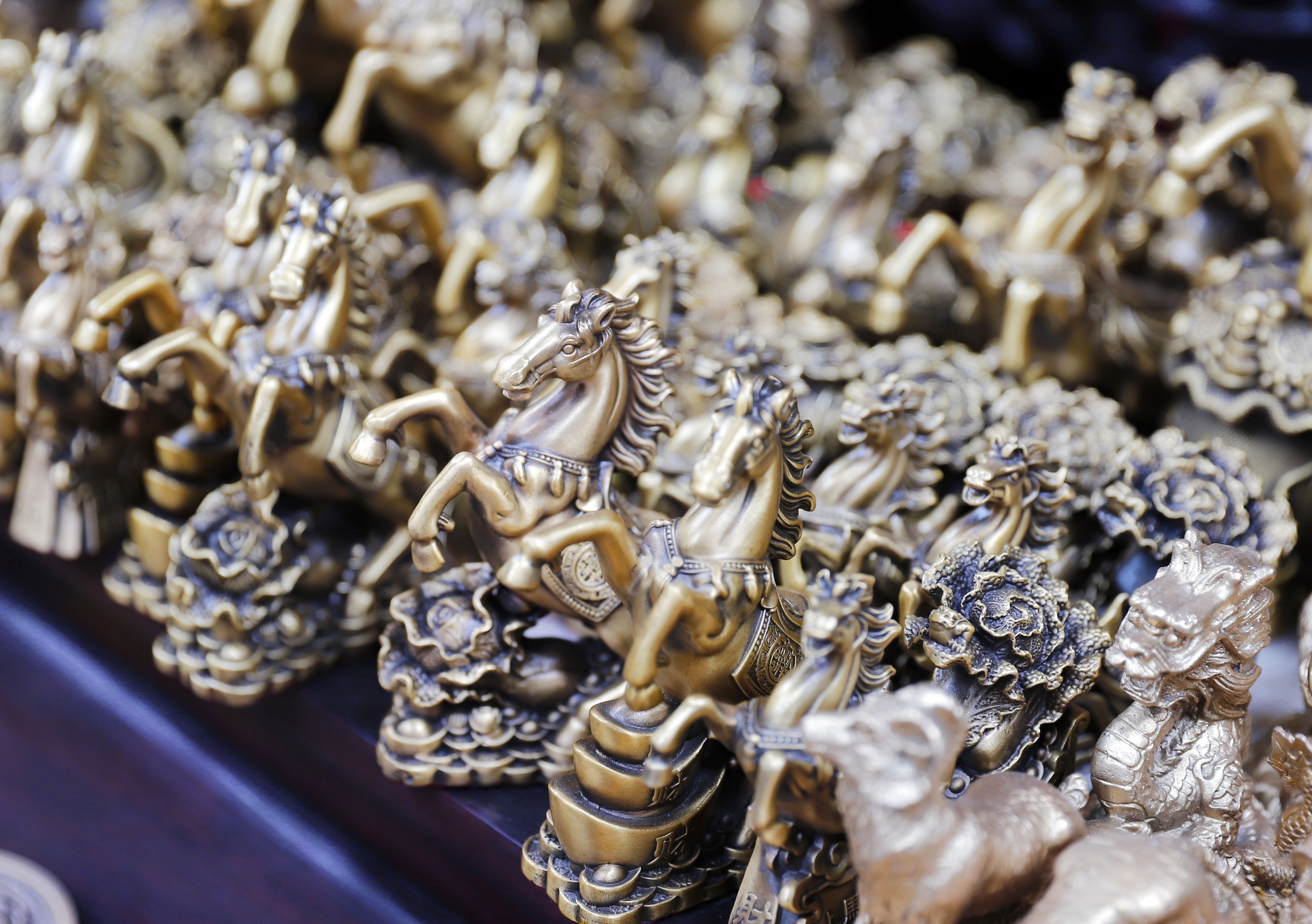 … những chú ngựa đủ kiểu dáng, chất liệu, nhiều nhất làm bằng đồng được nhiều người ưa chuộng.
