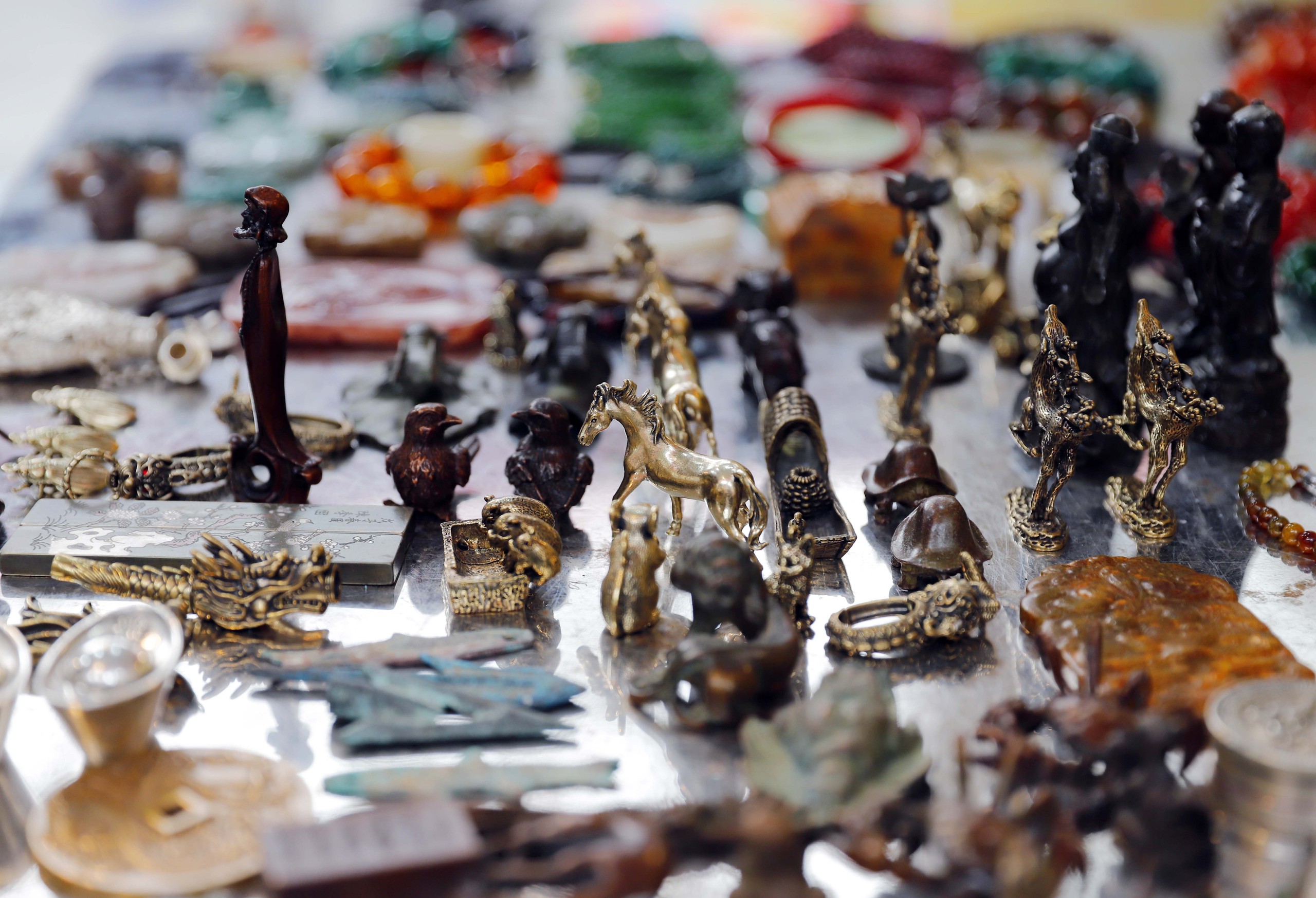 … tại gian hàng đồ bạc giả cổ, hầu hết là linh vật của năm và có nhiều kiểu dáng đa dạng, khá hút khách.