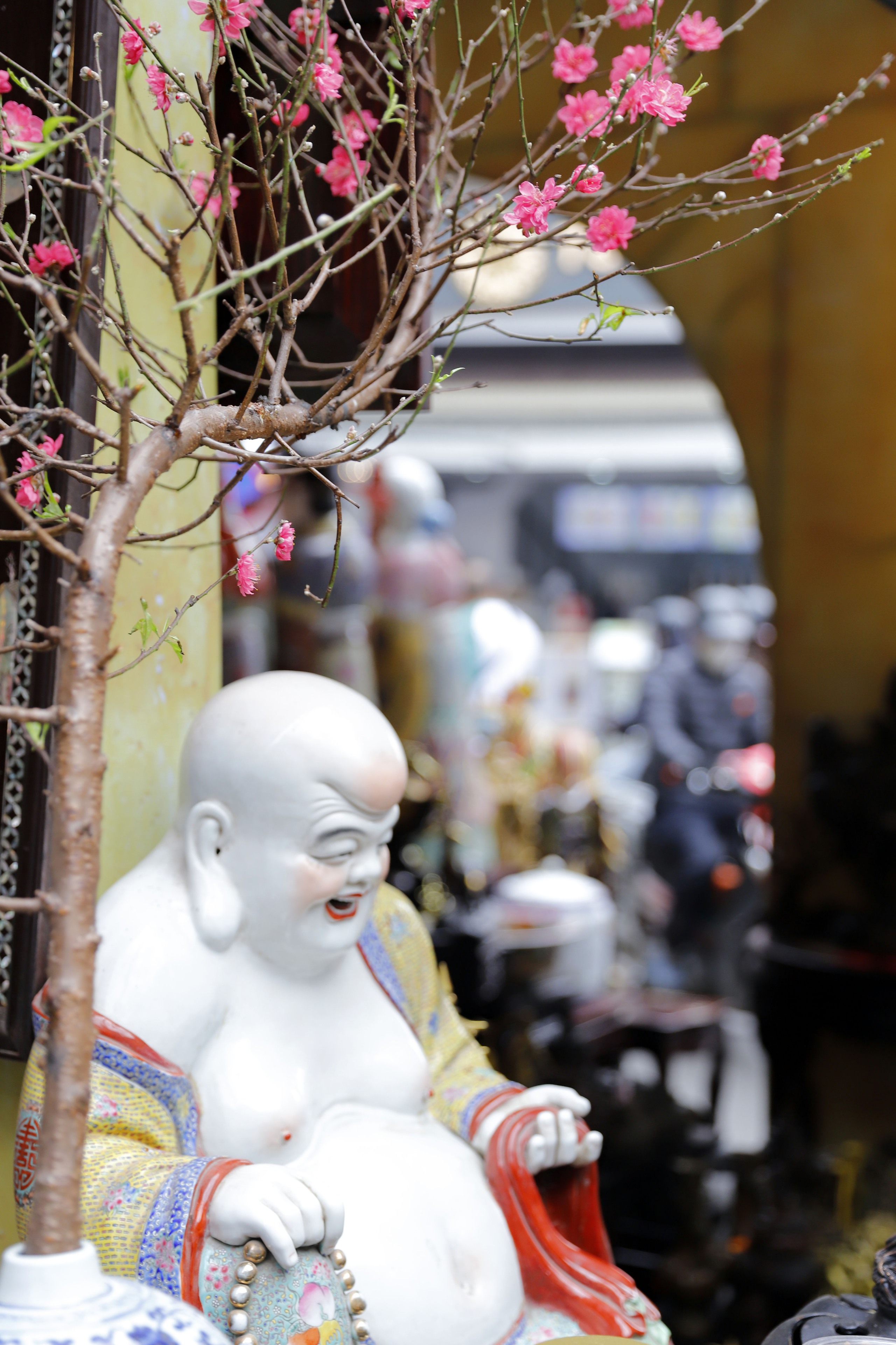 Chỉ còn chục ngày nữa là Tết Nguyên đán, các phố Hàng Lược, Hàng Mã đã đông người dân đi mua sắm. Ngoài đào, quất, vàng mã..., các món đồ cổ nhuốm màu thời gian hòa quyện ở phiên chợ đồ cổ tạo nên một không gian đậm chất Hà Thành.