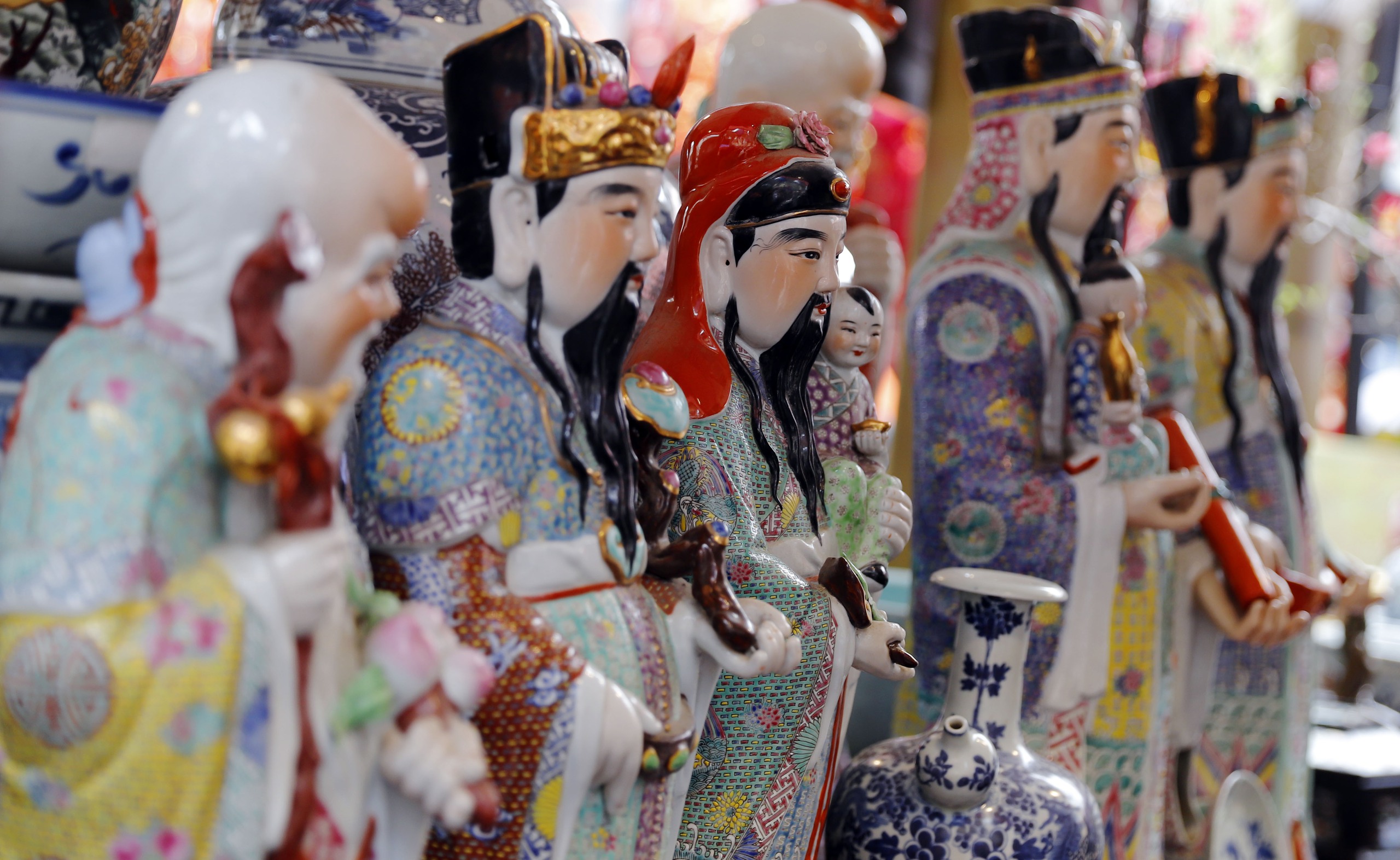 Các loại bình, tượng sứ cũng được nhiều người quan tâm. Theo nhiều người mua hàng, việc mua bán, trao đổi những món đồ cổ vào dịp cuối năm mới đầu năm cũ cũng mang ý nghĩa về tinh thần và cầu mong sự may mắn.