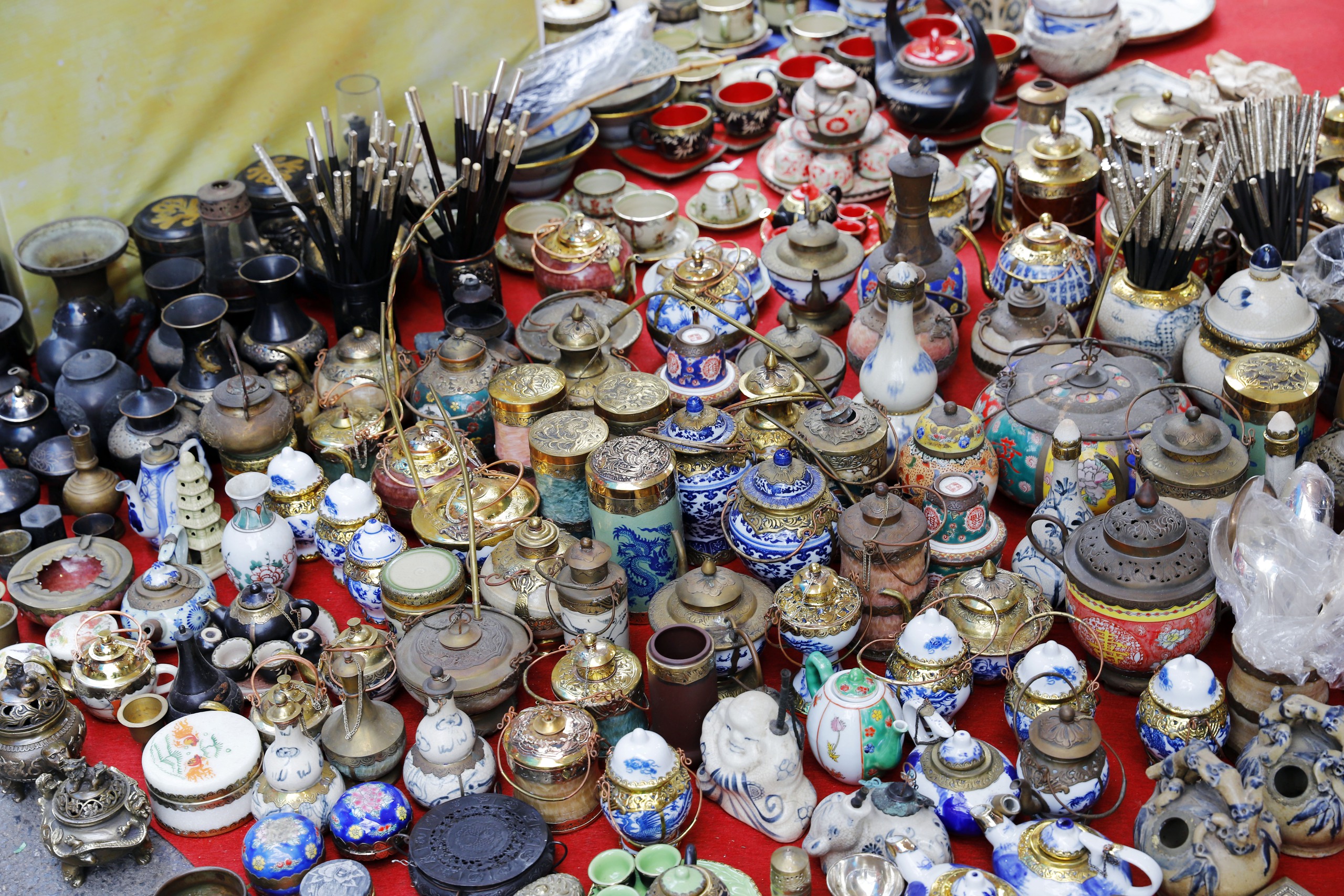 … đến các vật dụng bình dị trong cuộc sống hàng ngày như bát, đũa đồ cổ, giả cổ, đồ sứ... được bày bán ngay dưới lòng đường dịp cận Tết Nguyên đán này.