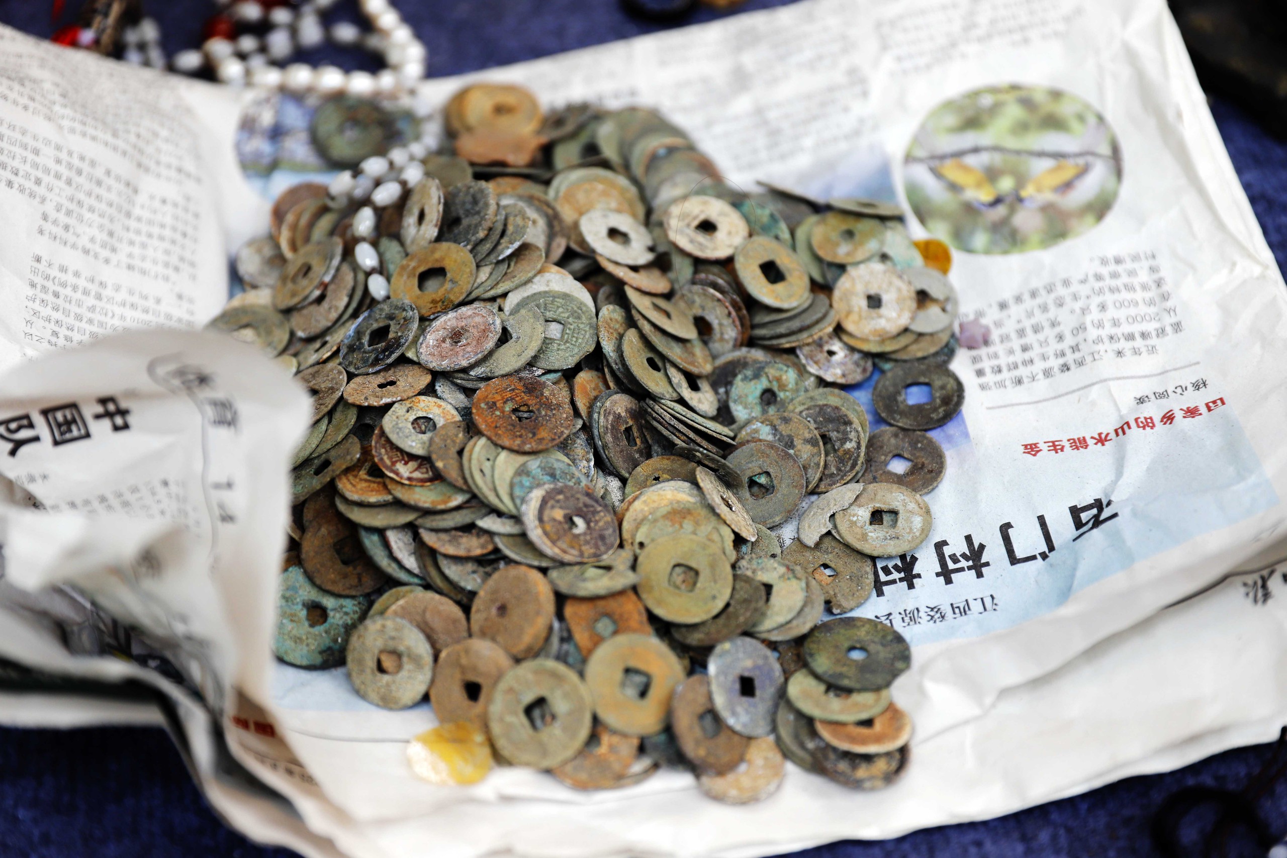 Một gian hàng gây chú ý bán những đồng tiền xu cổ.