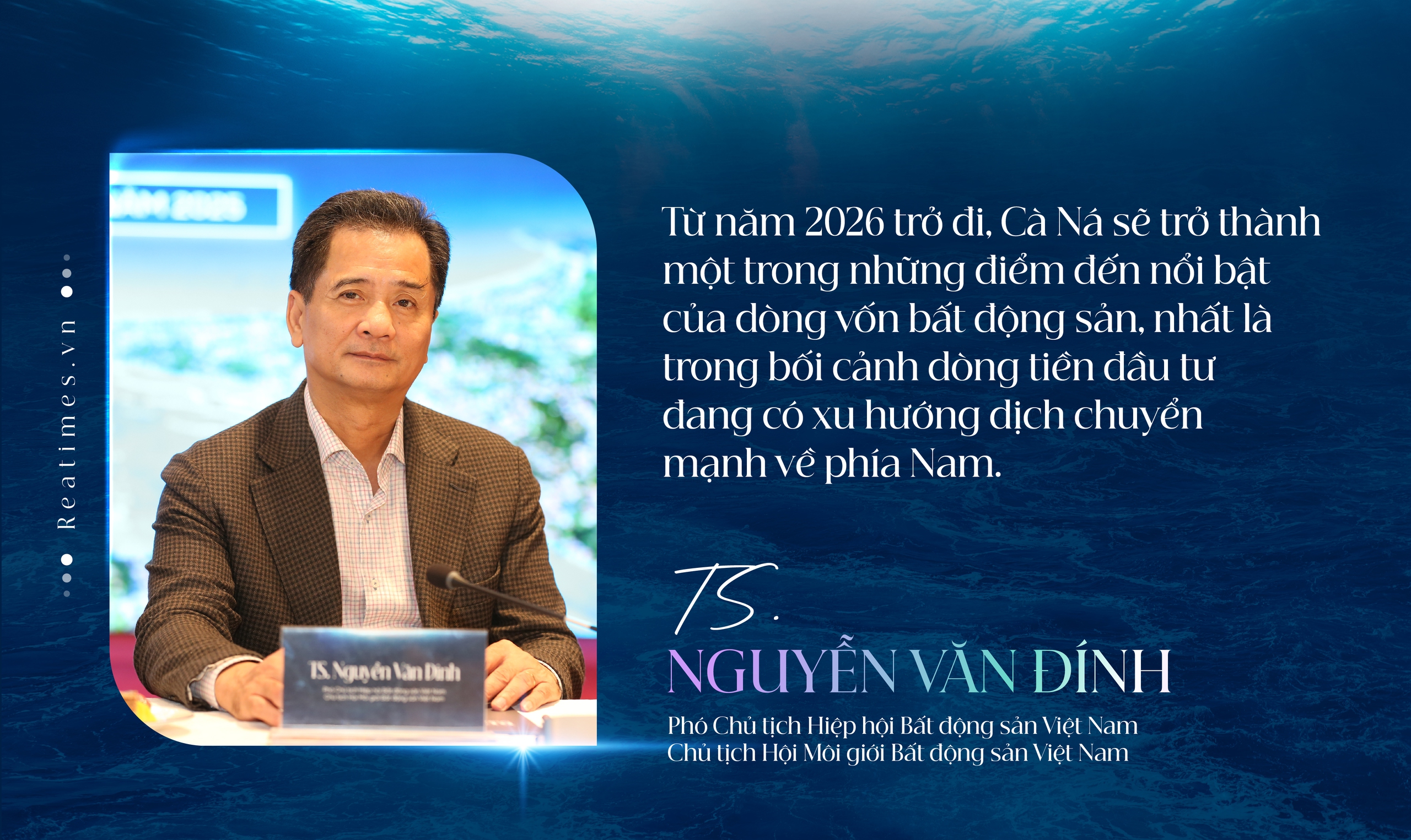 TS. Nguyễn Văn Đính, Phó Chủ tịch Hiệp hội Bất động sản Việt Nam, Chủ tịch Hội Môi giới Bất động sản Việt Nam, nhận định, mặt bằng giá hiện nay của Cà Ná vẫn đang ở mức rất thấp - một "điểm cộng" lớn đối với giới đầu tư bởi giá trị sinh lời tương lai là yếu tố quan trọng nhất. "Từ năm 2026 trở đi, Cà Ná sẽ trở thành một trong những điểm đến nổi bật của dòng vốn bất động sản, nhất là trong bối cảnh dòng tiền đầu tư đang có xu hướng dịch chuyển mạnh về phía Nam", TS. Nguyễn Văn Đính dự báo.