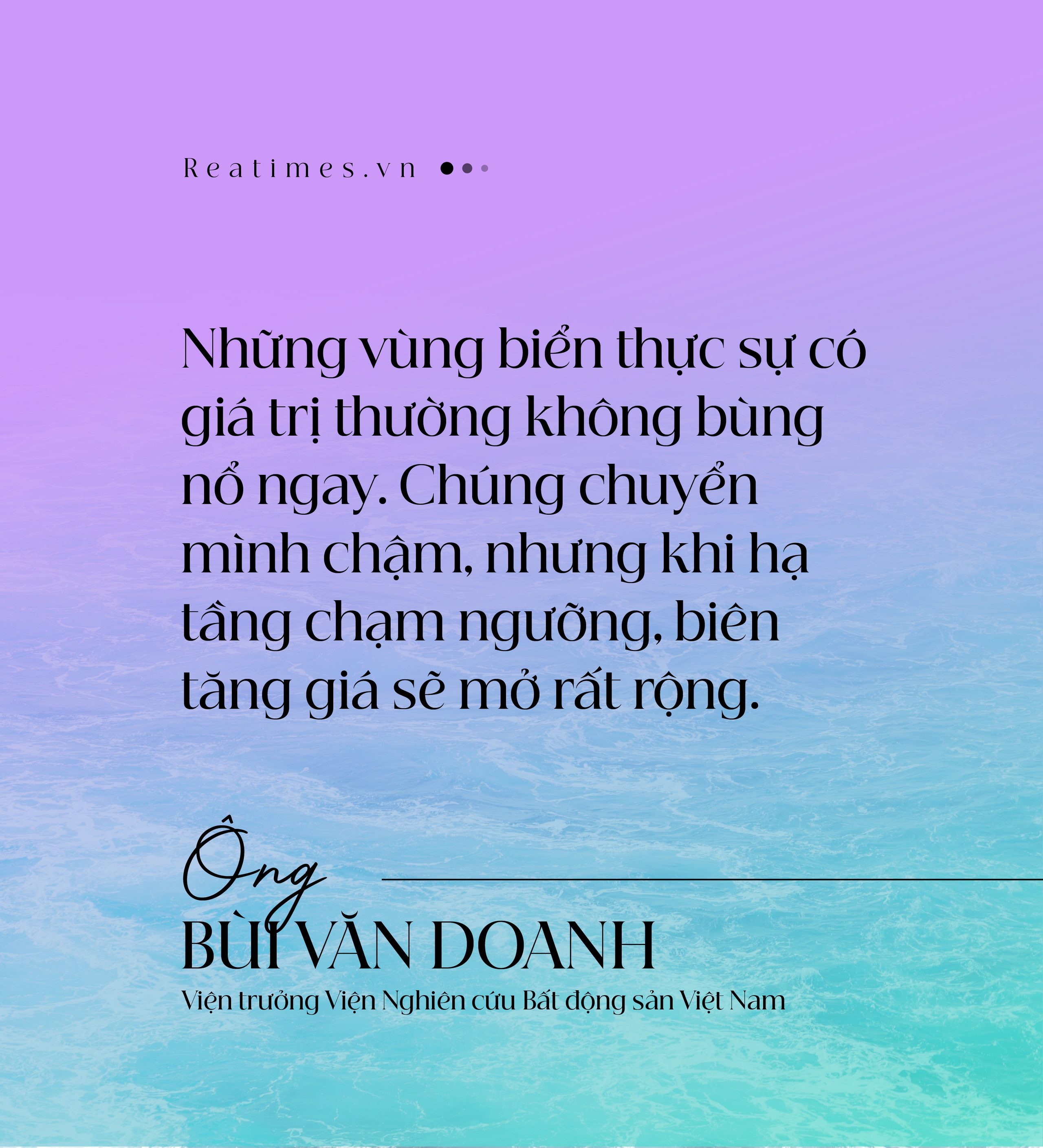 Ông Bùi Văn Doanh nhận định: "Những vùng biển thực sự có giá trị thường không bùng nổ ngay. Chúng chuyển mình chậm, nhưng khi hạ tầng chạm ngưỡng, biên tăng giá sẽ mở rất rộng".