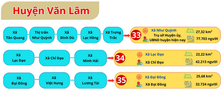 - Huyện Văn Lâm: 3 xã;