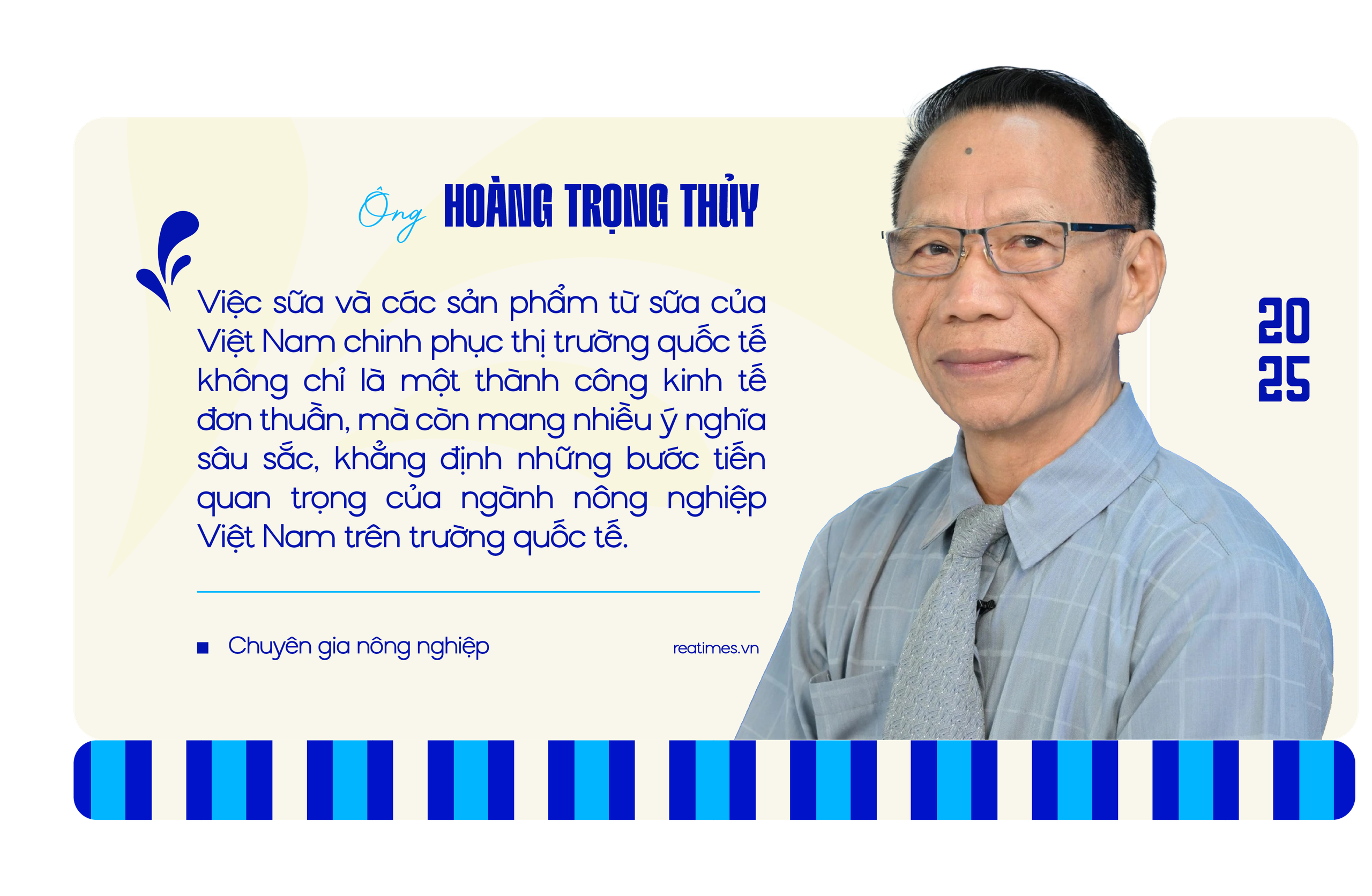 Nhìn lại hành trình, Chủ tịch Hiệp hội Sữa Việt Nam, PGS.TS. Trần Quang Trung khẳng định, điểm sáng của ngành nằm ở sự chủ động hội nhập quốc tế và chinh phục được các thị trường khó tính như Mỹ, Singapore, Nhật Bản, New Zealand, Trung Quốc… của các doanh nghiệp, nổi bật nhất là Vinamilk.