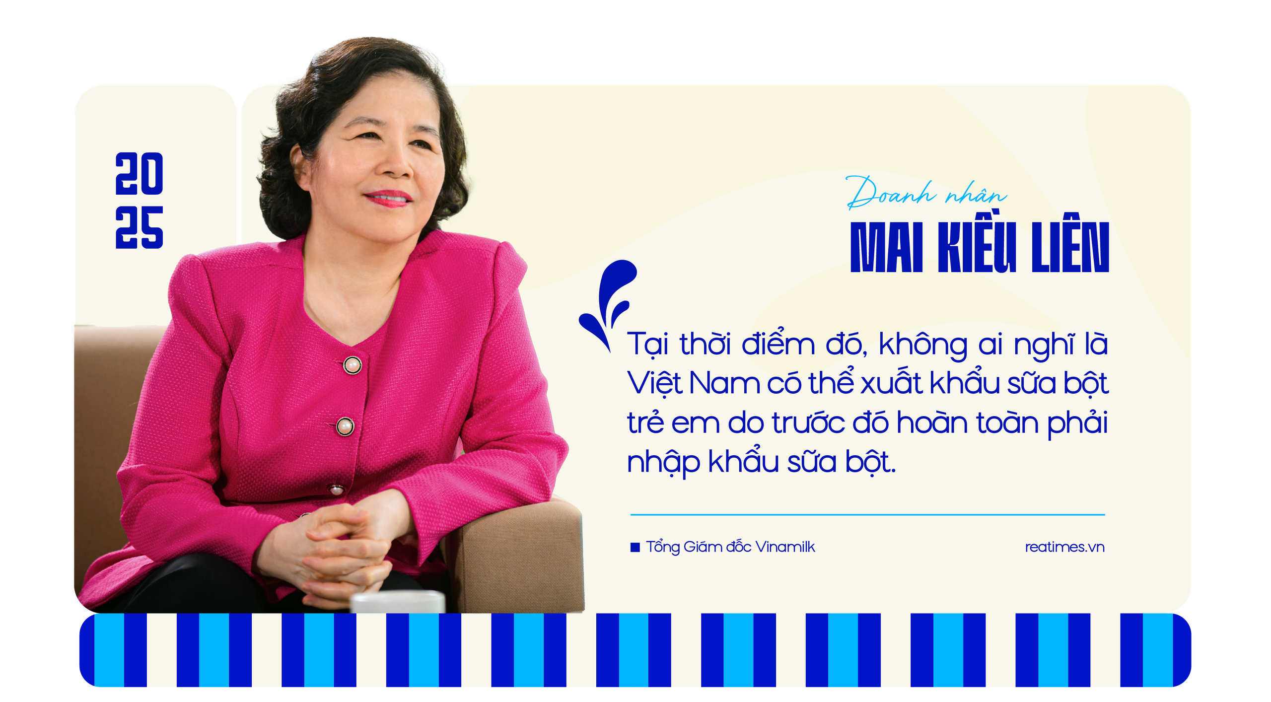 "Tại thời điểm đó, không ai nghĩ là Việt Nam có thể xuất khẩu sữa bột trẻ em do trước đó hoàn toàn phải nhập khẩu sữa bột. Vinamilk đã vượt qua vòng kiểm tra chất lượng khắt khe của nước bạn, thậm chí một số tiêu chí còn khó hơn chuẩn quốc tế. Sau khi chứng minh được về chất lượng và khả năng giao hàng đúng theo yêu cầu, Vinamilk đã ký các hợp đồng xuất khẩu lớn vào thị trường này", doanh nhân Mai Kiều Liên, Tổng giám đốc Vinamilk chia sẻ về lô sữa xuất khẩu đầu tiên.