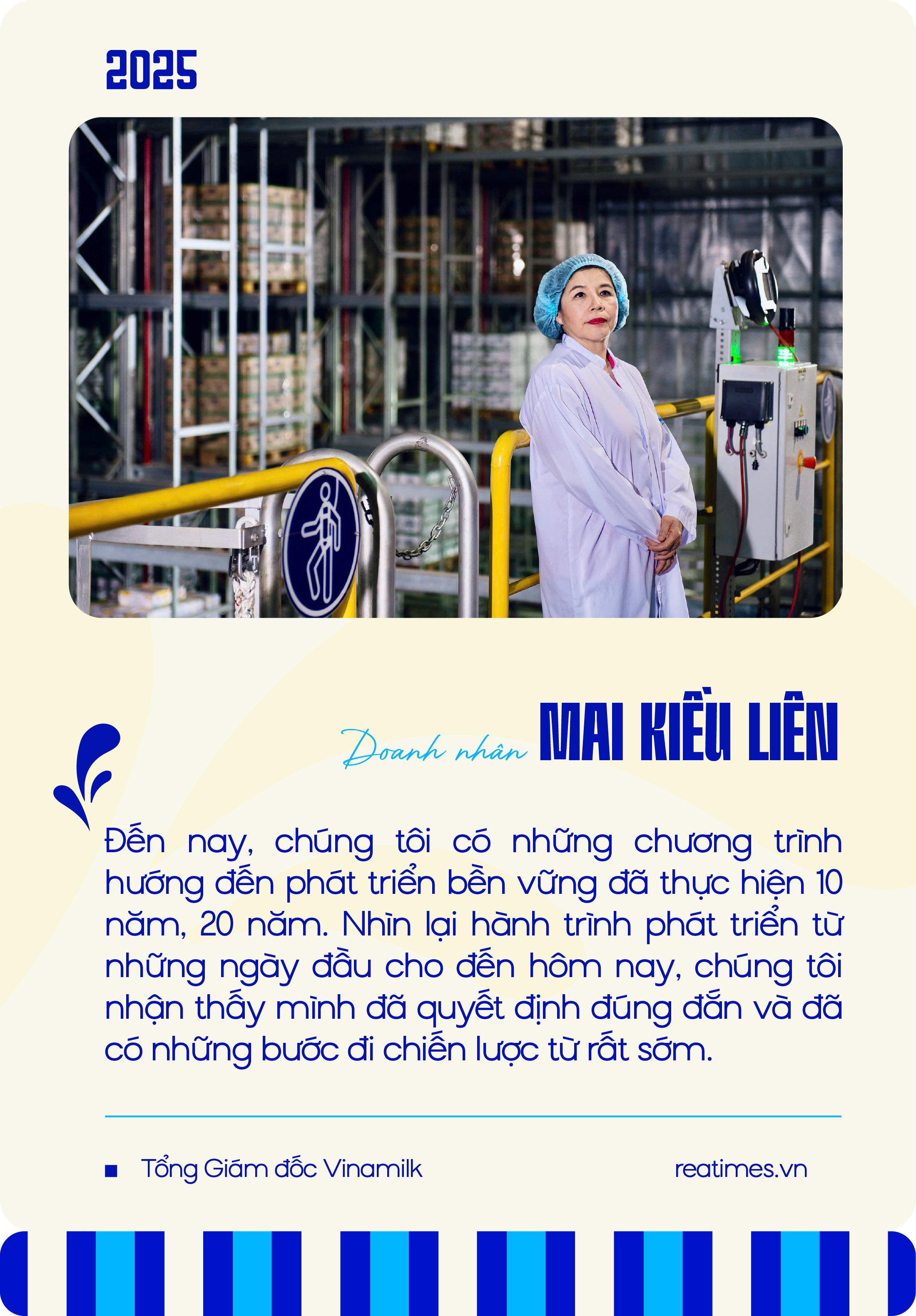 Doanh nhân Mai Kiều Liên chia sẻ, khi Vinamilk bắt đầu thực hiện những dự án dài hơi về phát triển bền vững, khái niệm này còn chưa phổ biến như hiện nay. Lúc đó, người ta nói nhiều về trách nhiệm xã hội của doanh nghiệp. Nhưng cho dù là khái niệm nào, thì cũng đều xuất phát từ triết lý chung là hướng về cộng đồng với những cam kết dài hạn.