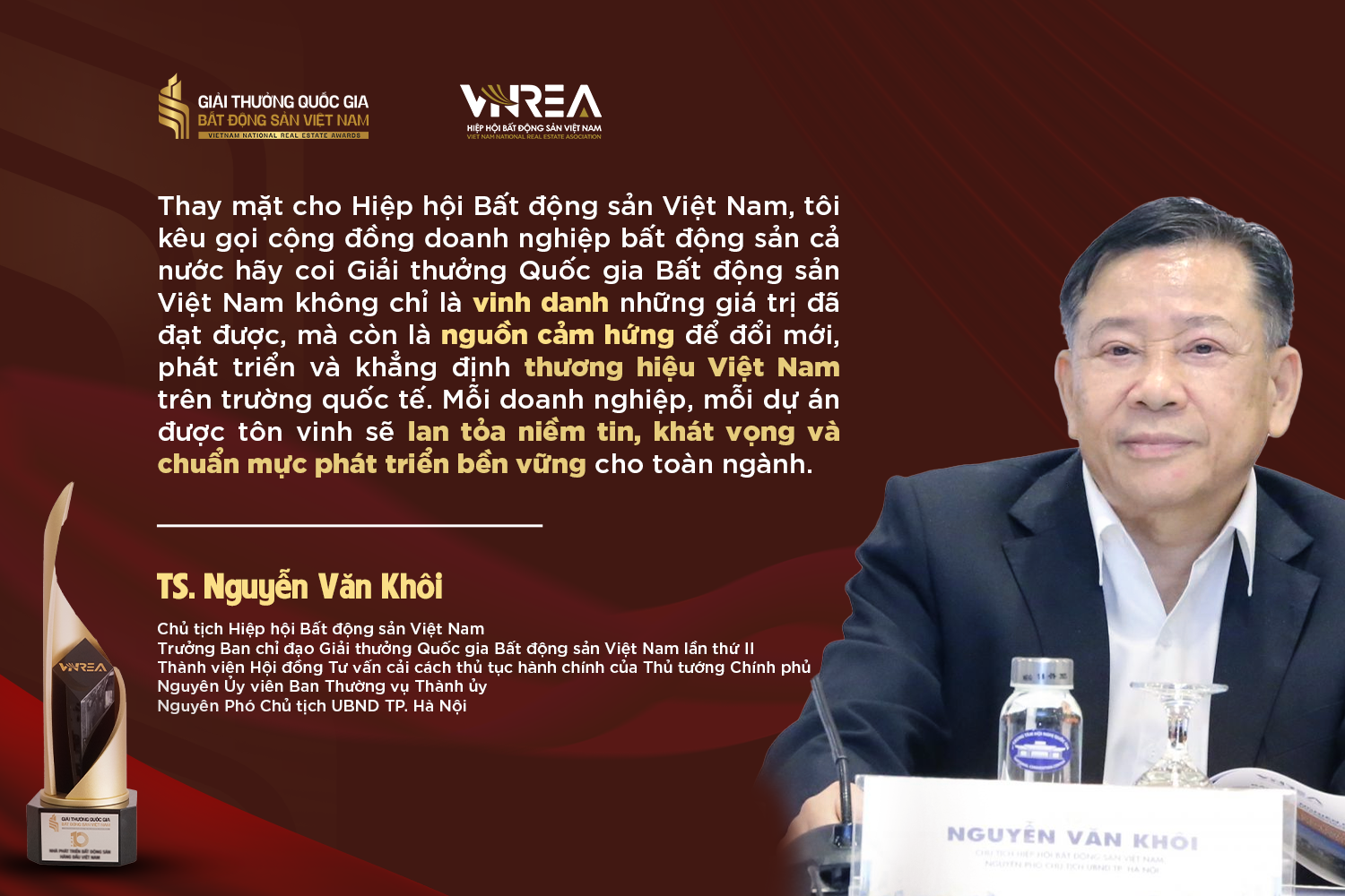 Với tinh thần "Doanh nghiệp lớn mạnh - Quốc gia thịnh vượng", thành công của Giải thưởng sẽ thúc đẩy cộng đồng doanh nghiệp bất động sản tiếp tục phát huy, khẳng định vai trò tiên phong trong kiến tạo diện mạo đô thị hiện đại, phát triển hạ tầng chiến lược, đồng hành cùng tiến trình chuyển đổi xanh, chuyển đổi số và vươn mình cùng mục tiêu thịnh vượng của đất nước.