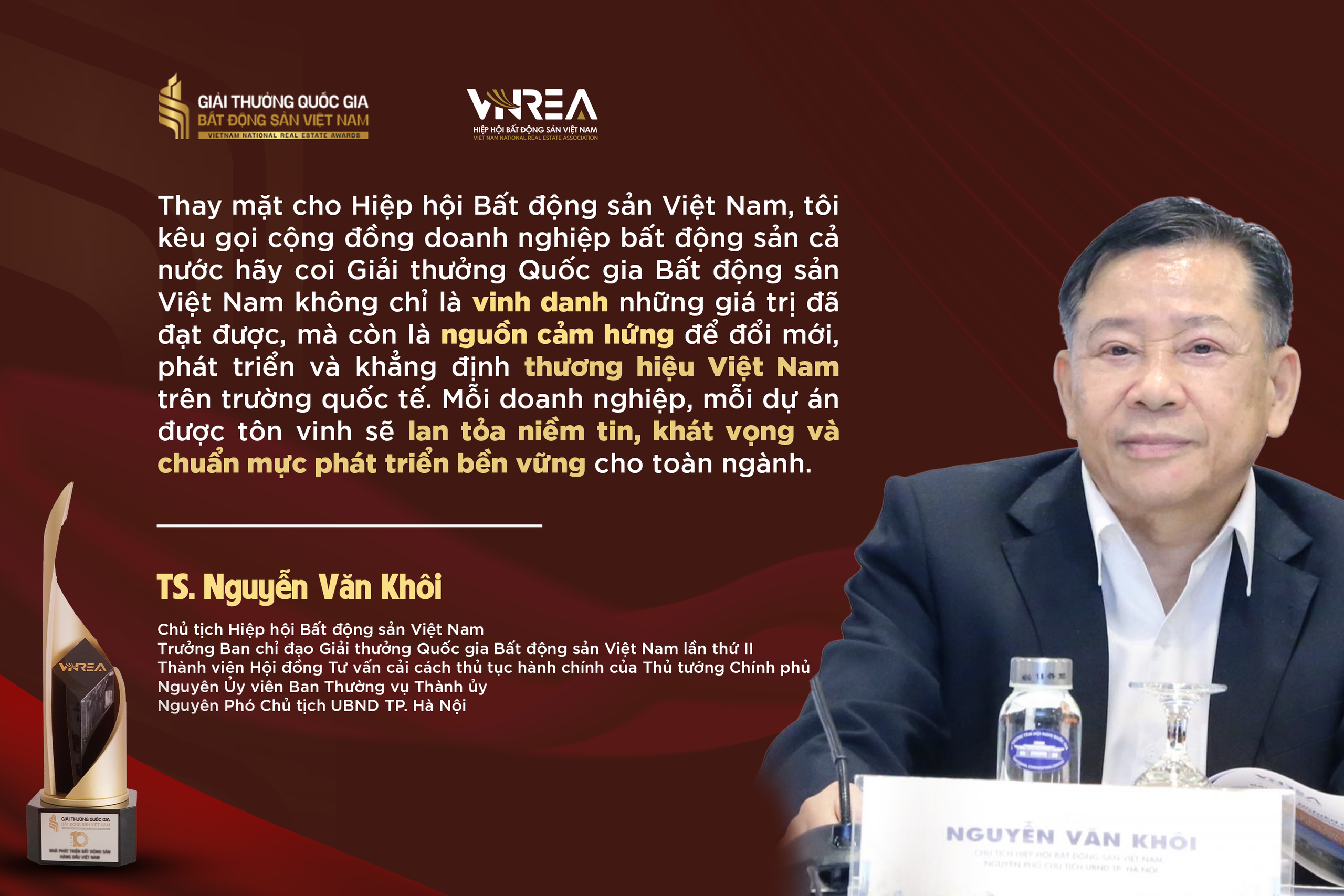 Lễ công bố và trao giải thưởng quốc gia Bất động sản Việt Nam được Ban tổ chức tiến hành trang trọng vào Quý II hoặc Quý III năm 2026.